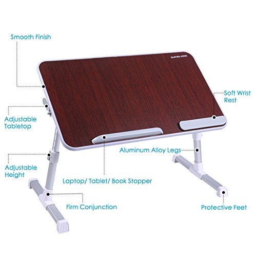 -. Title : Portable Laptop Table by Superjare | Foldable & Durable Design Stand Desk | Adjustable Angle & Height for Bed Couch Floor | Notebook Holder | Breakfast Tray