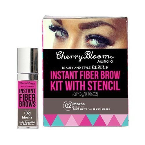 -. Binding : Misc. -. Brand : Cherry Blooms -. Color : Brown -. EAN : 0651024524234 -. Feature : A true brow wow for those with light brown to dark blonde hair! Amazing natural fiber powder. Our proP.R.Ietary blend of natural fibers and smooth powder act like instant brows. / Includes: 1 tube: Fiber brow wand; 3 stencils: Thin, thick or natural / Semi-permanent formula won't fade during the day, but won't absorb into the skin. / Sweat proof! Splash proof! / Remove with warm water, a little soap and cotton ball. -. IsAdultProduct : 0 -. Label : Cherry Blooms Australia -. Manufacturer : Cherry Blooms Australia -. Model : CB-IBK-M -. MPN : CB-IBK-M -. NumberOfItems : 1 -. PackageQuantity : 1 -. PartNumber : CB-IBK-M -. ProductGroup : Beauty -. ProductTypeName : BEAUTY -. Publisher : Cherry Blooms Australia -. Studio : Cherry Blooms Australia -. Title : Cherry Blooms Instant Fiber Brow Kit With Stencil – Mocha – For Light Brown to Dark Blonde Hair -. UPC : 651024524234
