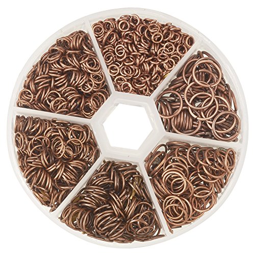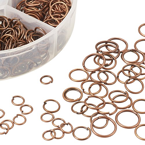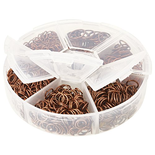 PandaHall Elite 1 Box Iron Plated Jump Rings 4mm to 10mm diameter with Container Red Copper