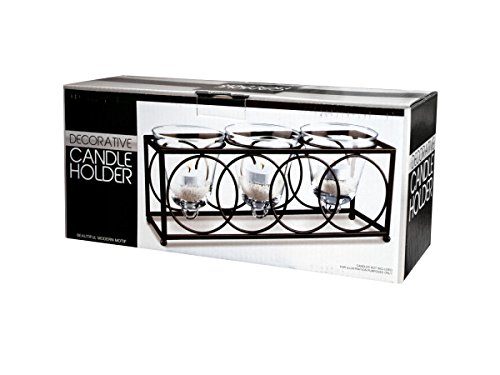 - Bring serenity to your space with this modern box design candle holder featuring a black metal open box with overlapping circles on two sides and round Ball feet on bottom
