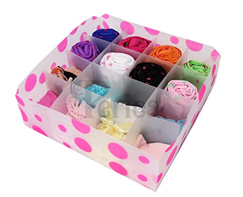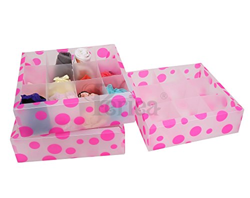-. Title : Periea - Pack of 3 Drawer Organizers for Bras, Underwear, Socks & Ties - Cleo (Pink)