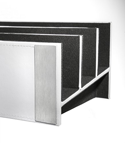 Architect Line Leather-Like Letter Sorter, White with Brushed Metal, Matching White Stitching and Velvet-Like Lining