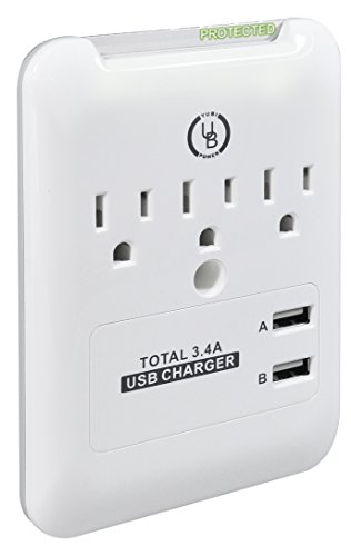 - Title : Yubi Power Slim Surge Protector - White - UL Listed - With 3 AC Plug Outlet Plus 2 USB Ports- 3.4 Amp Outlet - For Charging iPhone 5S, 5C, 5, 4S, 4 & 3GS, iPad 1, 2 & 3, iPad mini, Samsung Galaxy S5, S4, S3, S2, Blackberry, Tab 2, Playbook, HTC Flyer - Wall Mounted