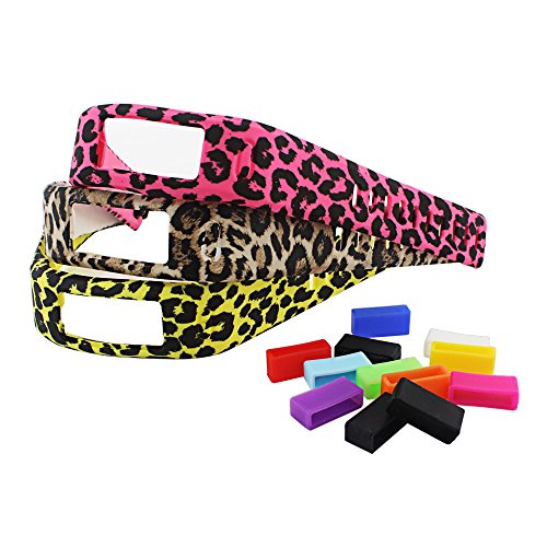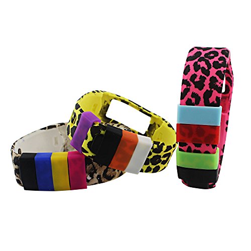 3pcs Replacement Bands with Clasps with lilytech LLC 12pcs Multicolor Replacement Silicon Fastener Ring for Garmin Vivofit (3pcs Leopard Style Large and 12pcs Fastener)