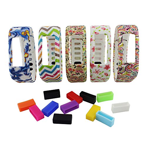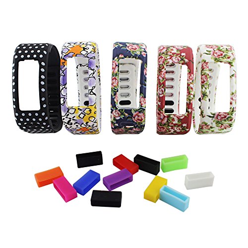 5pcs Replacement Bands with Clasps with lilytech LLC 12pcs Multicolor Replacement Silicon Fastener Ring for Garmin Vivofit (5pcs Rose Style Small and 12pcs Fastener)