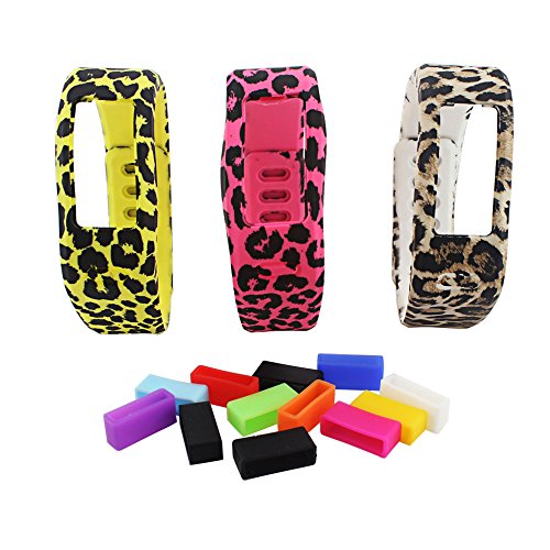 3pcs Replacement Bands with Clasps with lilytech LLC 12pcs Multicolor Replacement Silicon Fastener Ring for Garmin Vivofit (3pcs Leopard Style Small and 12pcs Fastener)
