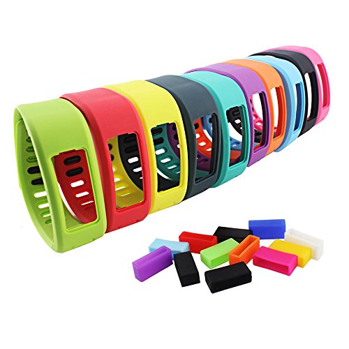 10pcs Replacement Bands with Clasps with lilytech LLC 12pcs Multicolor Replacement Silicon Fastener Ring for Garmin Vivofit (12 pcs Silicon Fastener Rings)