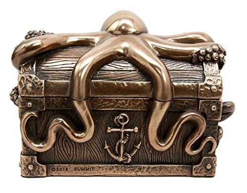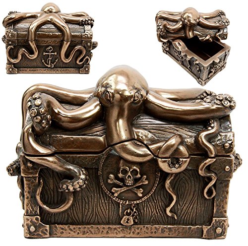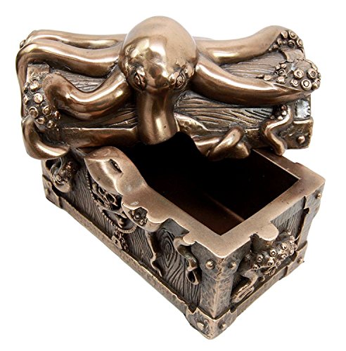 Own this functional kraken jewelry box for your collection, vanity, jewelry storage, coin storage and what have you! Beautifully crafted and designed on resin medium, our expert painters create an exotic jewelry box that will catch every eye's attention. Bring this fantasy deep sea creature jewelry box to your home or gift it away!