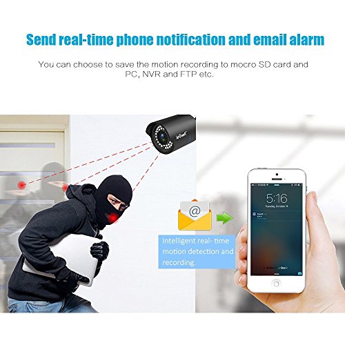 - Smart motion detection & email alarm & Phone notification: real time motion alarm via email or phone notification, Support 7/24 continuous recording, timing recording, motion detection recording and specific zones for motion detection. You can customer all kinds of recording plan as what you required.