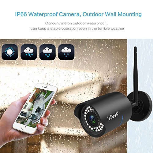 ieGeek Wifi Wireless Security Camera Outdoor IP Camera Home Surveillance System (720P HD, Night Vision, Motion Detect, Email Alert, Remote View Via Smart Phone/Tablet/PC, Up to 128GB Micro SD) Black