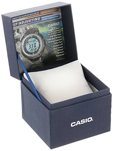 -. Feature : 100M Water Resistant, LED Backlight (Super Illuminator) w/Afterglow, Dual Time, Daily Alarm, selectable flash alert/vibration alert, Hourly Time Signal, Vibration Alert (Daily Alarms, Countdown) / 1/100 second stopwatch, Countdown timer, Full Auto Calendar (pre-programmed until the year 2099), 12/24 Hour Formats, Button operation tone on/off, Battery: CR2032, Approx. battery life: 10 years / Quartz Movement / Case Diameter: 47.1mm / Water Resistant To 100m (330ft): In General, Suitable for Swimming and Snorkeling, but not Diving