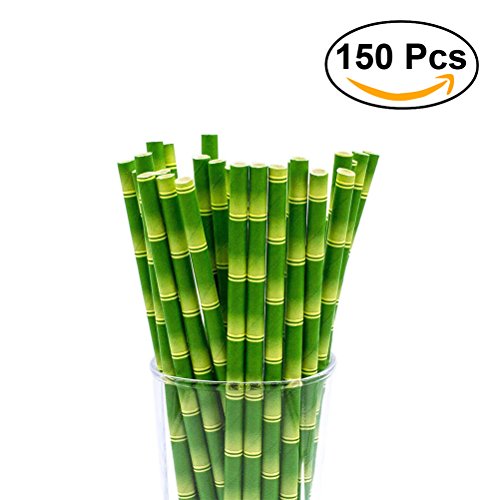 BESTOMZ 150pcs Biodegradable Paper Straws Bamboo Drinking Straws for Party Drinks Decoration