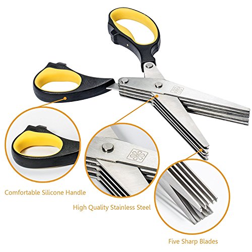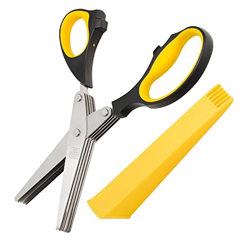 Zestkit zestkit 5-blade Kitchen Shears,스테인레스 스틸 허브 가위와 커버with클리닝 빗,옐로우&블랙
