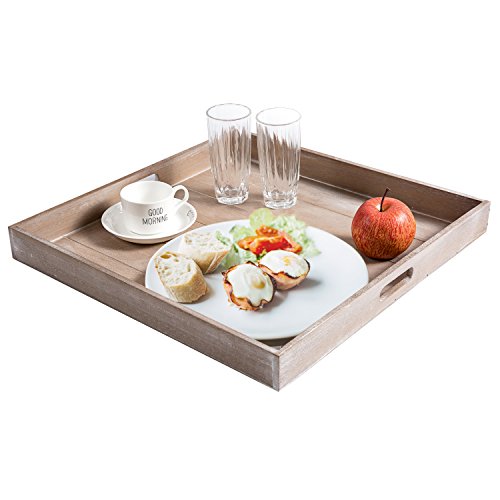 Large Shabby Chic Square Wood Serving Tray for Breakfast in Bed, Tea, Coffee - 19 x 19 inch - MyGift