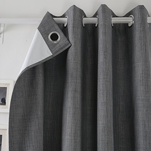 Deconovo Blackout Curtains Grey Energy-efficient Grommet Curtains with White Backing for Living Room 52W X 63L Dark Grey 2 Panels