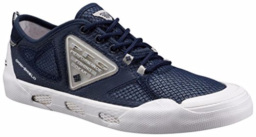 Studio : Columbia Publisher : Columbia Binding : Apparel Product Description A performance lace-up shoe designed for great traction and protection on boats and wet surfaces. Internal EVA vented footbed delivers comfort and breathability while a razor-siped rubber outsole lets you land the Big One. A combination of breathable mesh and rubber overlays upper. Blood N Guts water and stain resistant treatment. 0