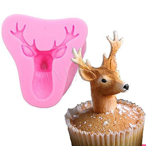 Anyana 3D big Stag's Head Mold Christmas Deer Silicone Mould Fondant Cake decorationg elk sugarcraft chocolate cookie tool cupcake topper
