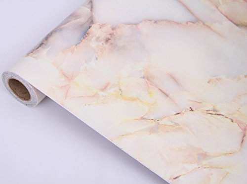 EZPaper marble contact paper yellow cream brown adhesive granite wallpaper peel and stick vinyl film (15.9" x 118")