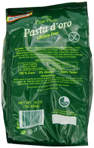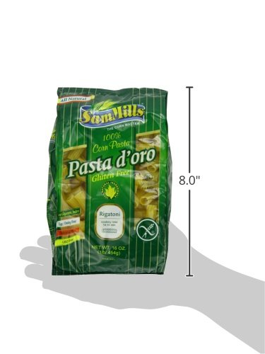 -. Binding : Grocery -. Brand : Sam Mills -. EAN : 0897660002006 -. Feature : Pack of 6, 1-Pound , total of 6- pound / Made from 100% GMO Free Corn / Gluten Free; Cholesterol Free; Kosher; Soy Free; Low Fat / Quick Cooking; Not Instant but cooks in half the time / Cleanest label in the industry, measuring UNDER 5 PARTS PER MILLION FOR TRACES OF GLUTEN -. Label : Sam Mills -. Manufacturer : Sam Mills -. MPN : 897660002006 -. NumberOfItems : 6 -. PackageQuantity : 6 -. PartNumber : 897660002006 -. ProductGroup : Grocery -. ProductTypeName : GROCERY -. PublicationDate : 2011-03-25 -. Publisher : Sam Mills -. Studio : Sam Mills -. Title : Sam Mills Pasta D'Oro Gluten Free Rigatoni, 1-Pound (Pack of 6) -. UPC : 897660002006