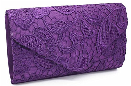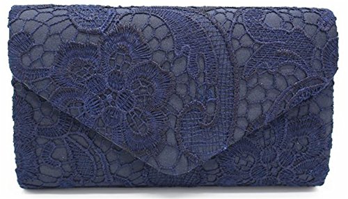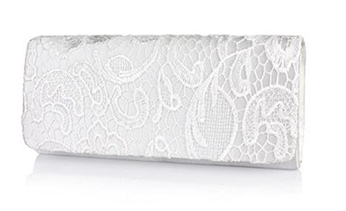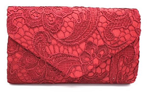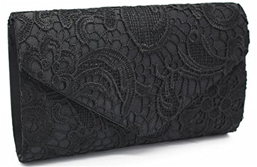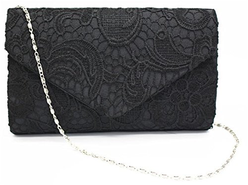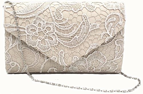 This envelope clutch has a satin and lace on the body and a drop-in chain strap for the perfect night-out accessory.