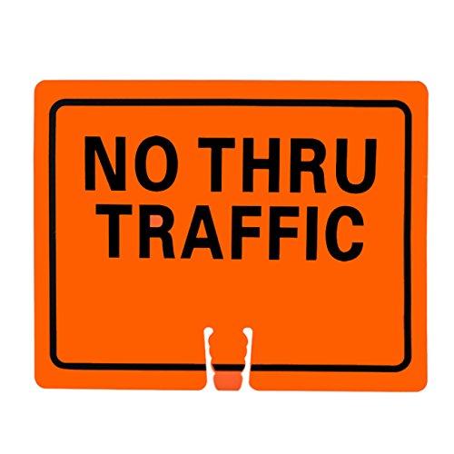 RK Traffic Cone Sign 25 Legend "No Thru Traffic", 18" Width x 14" Height, Black on Orange