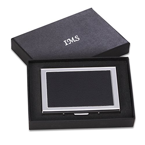 Credit Card Holder IMS RFID Blocking Thin Stainless Leather Case Wallet with 6 Card Slots Best Protection High Quality Smooth Metal Leather Case Slim Business 6 PVC Slots Card Case Unisex (Black)