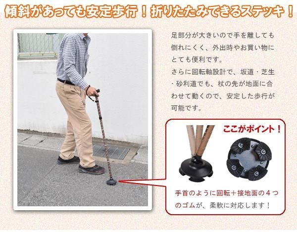 | 傾斜があっても安定歩行!折りたたみできるステッキ! |