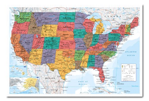 -. Title : USA United States Map Wall Chart Poster Magnetic Notice Board White Framed - 96.5 x 66 cms (Approx 38 x 26 inches)