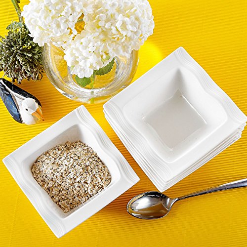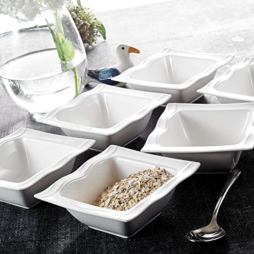 Malacasa, series Mario, 6-piece 5.5 inch 12 ounce ivory white porcelain china ceramic cream white cereal bowls(set of 6) 5.5" cereal bowl l*w*h: 14*14*5.5cm weight: 268g freezer, dishwasher and microwave safe.