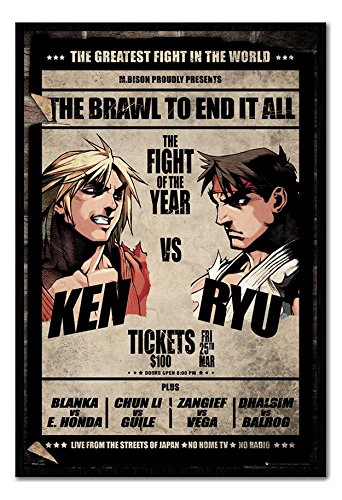 -. Title : Street Fighter Ken VS Ryu Fight Poster Magnetic Notice Board Black Framed - 96.5 x 66 cms (Approx 38 x 26 inches)