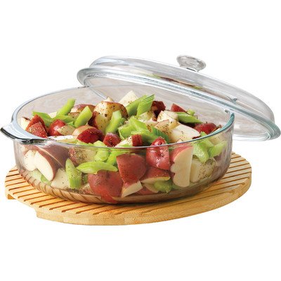 The Libbey 3.2 quart glass covered casserole is a great addition to your kitchen. It's a perfect size and has nice sized handles for easy transport. It is dishwasher safe and made in Mexico.Feature