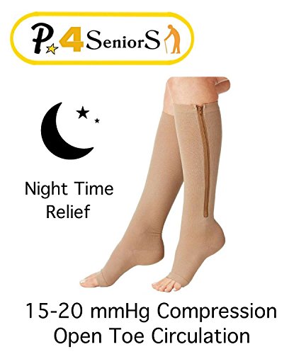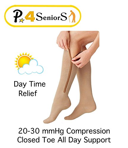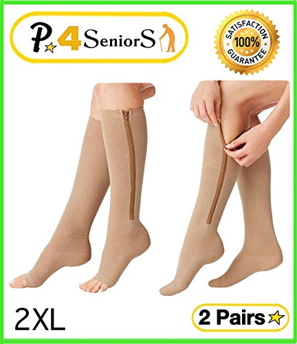 Presadee Seniors 15-20 mmHg And 20-30 mmHg Zipper Compression Easy Zip Up Socks Swelling Calf Leg Day And Night 2 Pack (2XL, Beige)