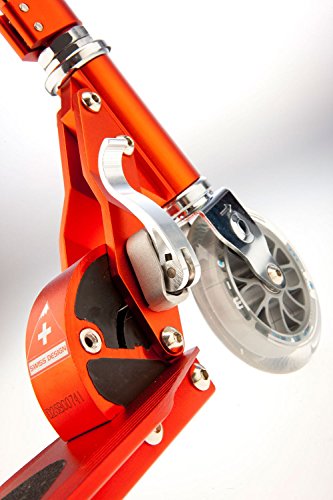 Fur Kinder ab 5 Jahren geeignet. Mit auskappbarem Kickstander zum muhelosen Abstellen des Scooters. Halterung fur Trageriemen vorhanden