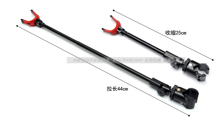 This fishing bracket can be extended to 17.5"/44 cm. The bracket rod is 180 degree rotatable and the rubber clip is 90 degree rotatable. An useful tool for fishing lovers.