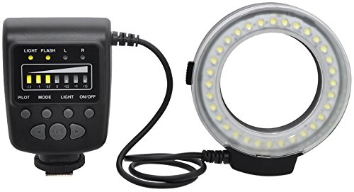 - Feature : Compatible with all Nikon DSLR cameras / Great light source for indoor & outdoor photography / 32 High Intensity LED's / Deluxe Starter Kit: 6pc Memory Card Case, Mini tripod, lens cleaning fluid, cleaning cloth, 2 universal screen protectors, and 5pc cotton swabs / Left and Right flash Function + Step rings 52-77mm included