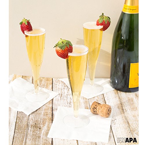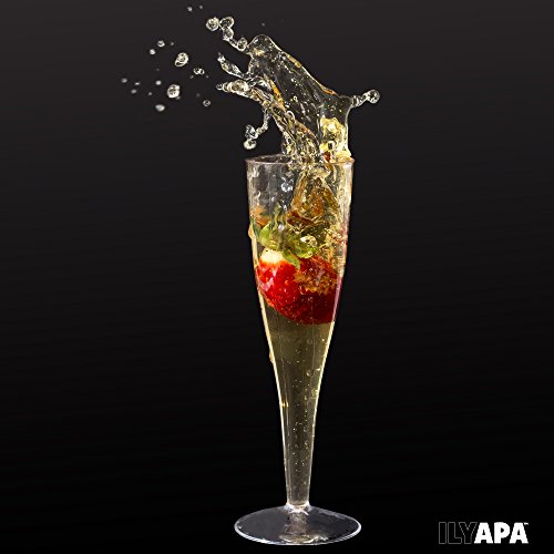 Stylish Sturdy These crystal clear plastic champagne flutes feature a simple, elegant design and will add a professional feel to your event. Champagne glasses bulk are perfect for weddings, engagement parties, reunions, mitzvahs, birthdays, family gatherings, luncheons, BBQs, dinners, fiestas, retirement celebrations, picnics, buffets, catering, food services and more! Safer, Quicker More Convenient Unlike regular champagne glasses that can shatter and create a hazard, these plastic champagne glasses are designed for safety and convenience. When you're done you can simply dispose of the cheap champagne glasses, or wash them and use them again. We know you'll love Ilyapa's 4 Ounce Plastic Champagne Flutes Bulk. Click "Add to Cart" and order today! 0 |