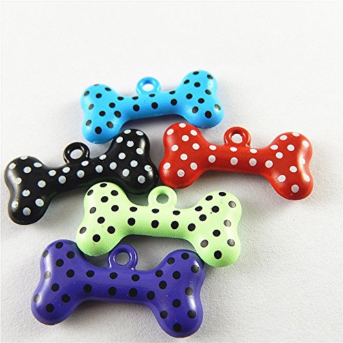 JulieWang 16pcs Mixed Metal Spot Dog Bone Charms Pendants for Jewelry Making Crafting DIY