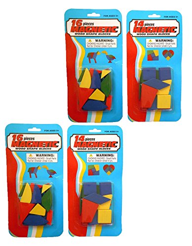 Set of 60 Magnetic Wooden Shapes and Blocks 60 Total Pieces (60)