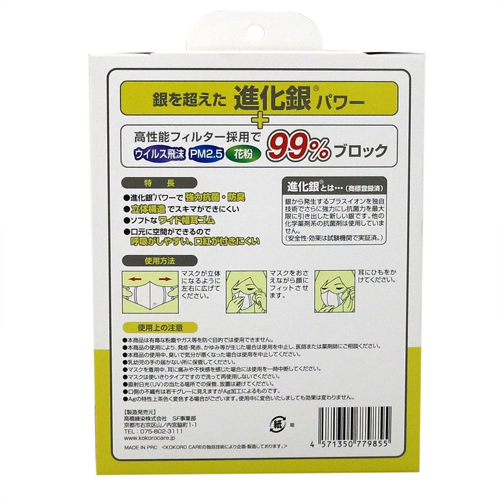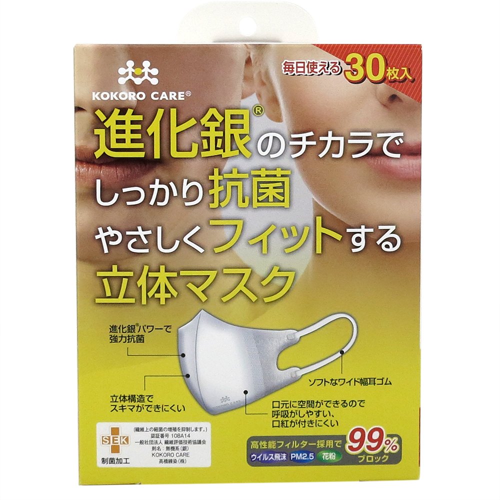 ● [Product Description] ● "30-inch solid mask that gently and firmly fits antimicrobial gently with the evolution of silver kokoro care" is an evolutionary silver that maximizes antibacterial power by making plus ions generated from silver more powerful by its own technology