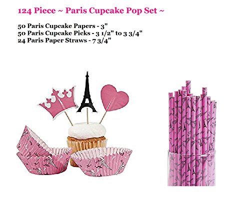 - Paris Cupcake Pop Set ~ 50 Cup Cake Papers / 50 Picks / 24 Straws ~ New in sealed package.