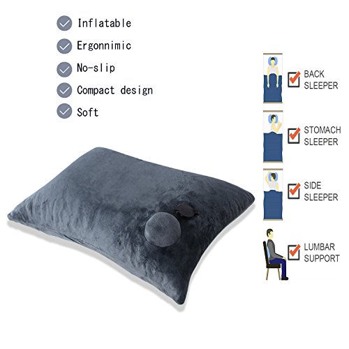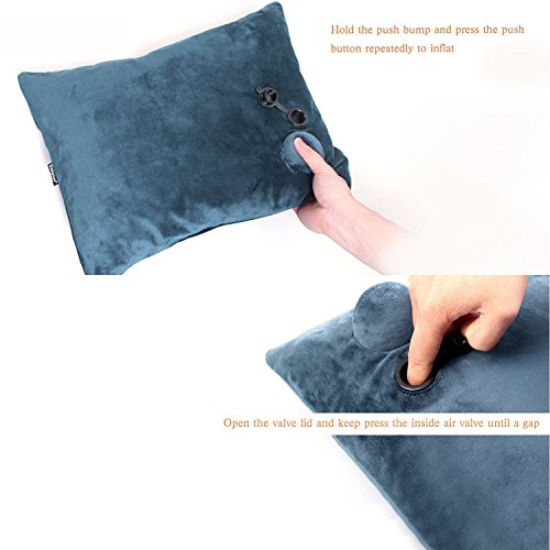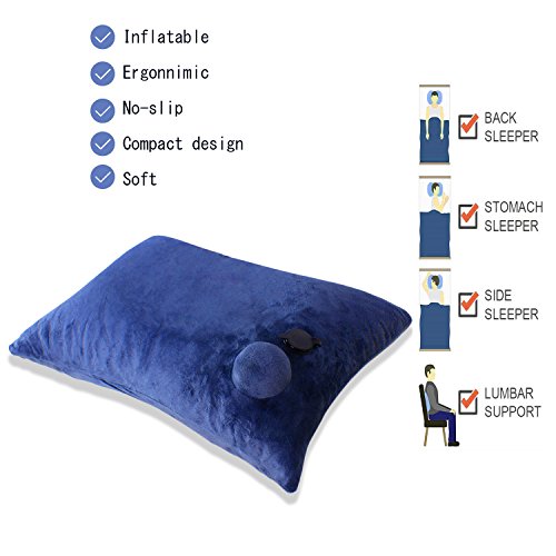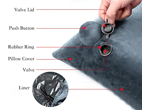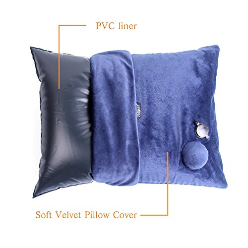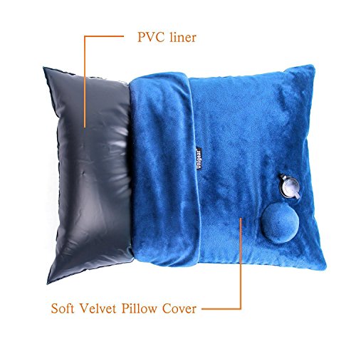 Studio : Unigear Publisher : Unigear Product Description Description Size: 11.8" (30 cm) X 15.7" (40 cm); Weight: 350g; Color: Grey; Dark Blue; Material: PVC Liner and Soft Velvet Pillow Case; Package Included: A Liner, a Pillow Case and A Carrying Bag; The Travel inflatable Pillow is specially design with Push-Button Pump. Inflating air by simply press the push button repeatedly and deflating by open the air valve and press the center of it. Move your fingers and muscles, right now! Life is a journey and just enjoy it!
