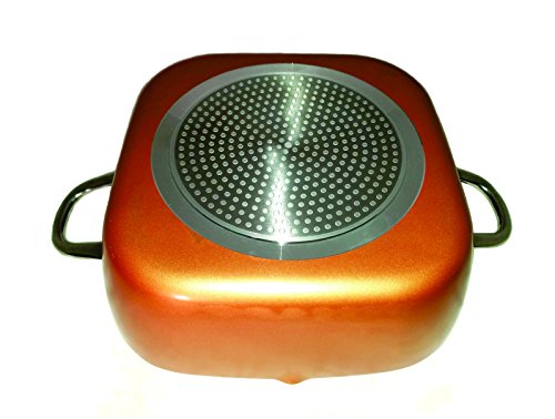 12 Inch XL Deep Square Pan Ceramic non-stick coating with pour spout Stainless steel induction base Oven safe up to 800 degrees Fahrenheit Double-riveted stainless steel handles Tempered glass lid PFOA PTFE and PFOS free Stain resistant Dishwasher safe.Feature