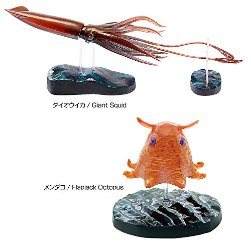 바다의 수심200m이심을 일반적에「심해」라고 부릅니다.심해는 수온이 낮고, 고수압과 캄캄한 세계에서,그 수역에 서식하는 심해 생물은 극한 환경에 적응했 기묘한 몸의 구조나 발광기를 지속되는 것 등,다양한 자모습을 하고 있습니다. 이 피규어박스그러면,세계 최대의 무척추 동물인 대왕 오징어(Giant Squid)를 포함한 대표적인 심해 생물8종을 선택해 있습니다.