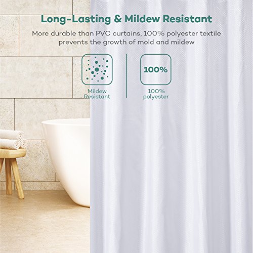 Mildew Resistant Fabric Shower Curtain for Bathroom with Rustproof Grommets and Plastic Hooks, Waterproof, Odorless, Eco-friendly, Antibacterial 72 x 72 inches by Sable