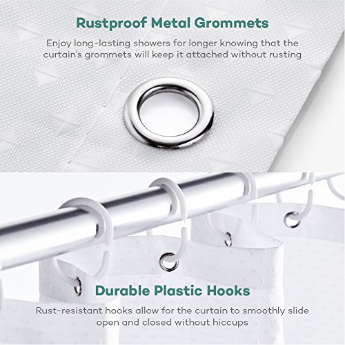 Highly Compatible Design: 72 x 72 inch polyester curtain perfectly fits wider or more narrow showers; 12 equally distanced metal holes keep it attached and fully functional