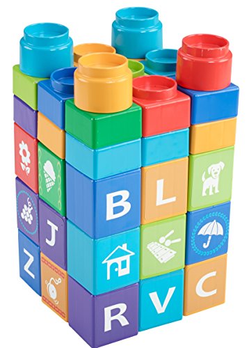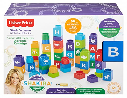 50 easy-to-stack and build blocks encourage development of fine motor skills and eye-hand coordination with so much for baby to discover as they play! The chunky square and circle-shaped blocks are easy for baby to grasp and hold, with big connectors on the top and bottom so there's no wrong way for baby to stack. And alphabet letters from A-Z introduce baby to letters and the alphabet, with pictures of familiar first objects that start with each block's featured letter all the way from A (for apple) to Z (for zebra)! When it comes to baby's development, the early years are the most important. Each play experience is an opportunity for baby to explore the world around them, taking it all in, learning, doing, and discovering new things along the way. The Shakira First Steps Collection encourages baby's well-rounded development, helping baby get ready for their first steps and beyond!Feature
