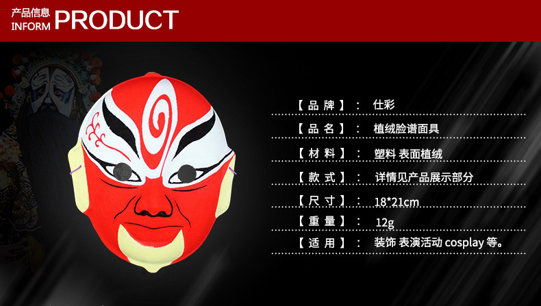 仕彩儿童面具京剧脸谱面具男全脸纸浆变脸表演面具装饰挂件面具