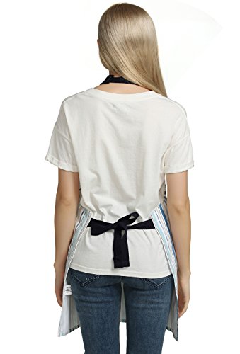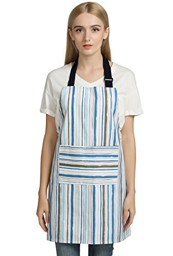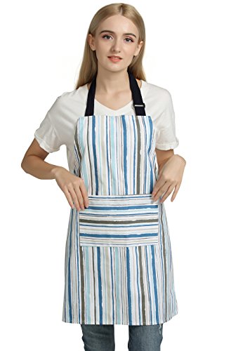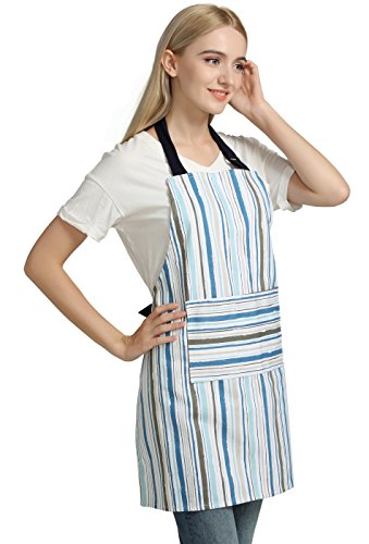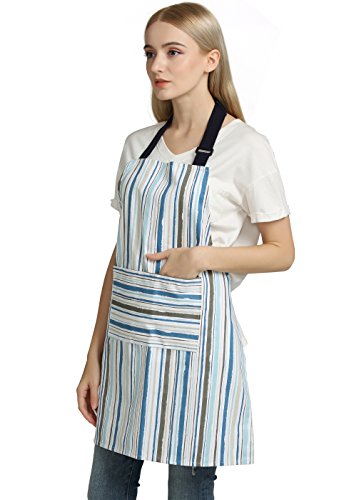 Professional 100% Cotton Kitchen Chef Works Chalk Stripe Bib Apron with Pockets, Adjustable Neck Strap by Jennice House (Multi-colored)