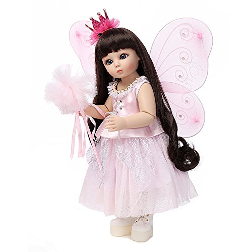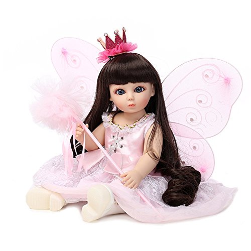 Feature Type:Full vinyl Dimensions:45cm/18inch; deviation exists due to different measuring ways. Hair:pasted wig , smooth and can be washed Nose: the nostrils are open, just like breathing, very realistic Face: painted by our artist and it becomes some little pink blush Nails:the finger and toe nails are also painted 100% by hand-drawn for that manicured, look redness of the nail bed and translucent nails Skin: The skin is the most unique place this doll, designers will spend a lot of time to baby's skin looks more realistic multi-layer manufacturing Color: after special treatment, will not fade nor rub off. Eyes: Taiwan top quality acrylic eyes, blue or brown eyes, they can not blink. Product description This reborn baby doll is 100% handmade craftwork.This is one kind of baby doll with beautiful clothes. You also can wear them clothes as you want when you get them. They all have a moist lip, which make you feel she looks so truly so that you want to kiss them.When you hug her in your arms, you will notice all of her realistic details,chubby face that looks as healthy as an infant should, her pretty little pout She is truly a delight for your eyes and ears. This BJD doll will bring your children much happiness in the future. Bring her to your home and give your children a big surprise! What's in the box: 18" baby doll x1; outfitx1 0