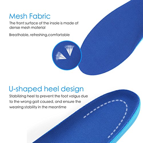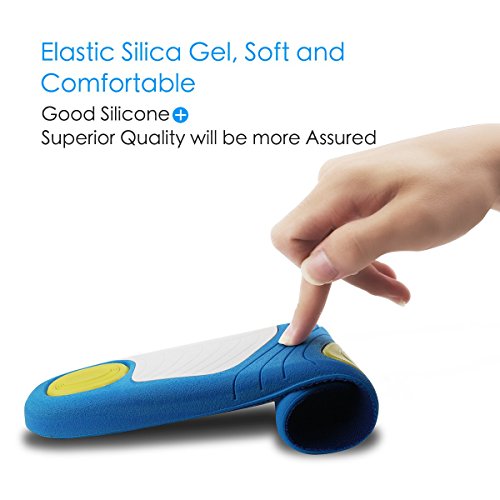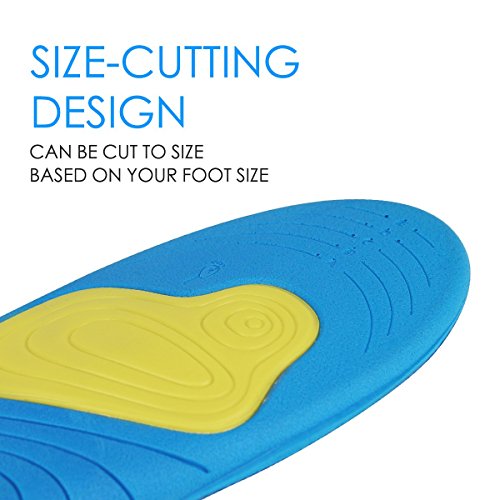 HIGH QUALITY MATERIAL: The insoles includes valorous fabric that absorbs sweat and keeps away odor from the feet, the GEL and PU material is comfortable for feet to sports because flexibility is very good, it can absorb shock and reduce stress on feet.
